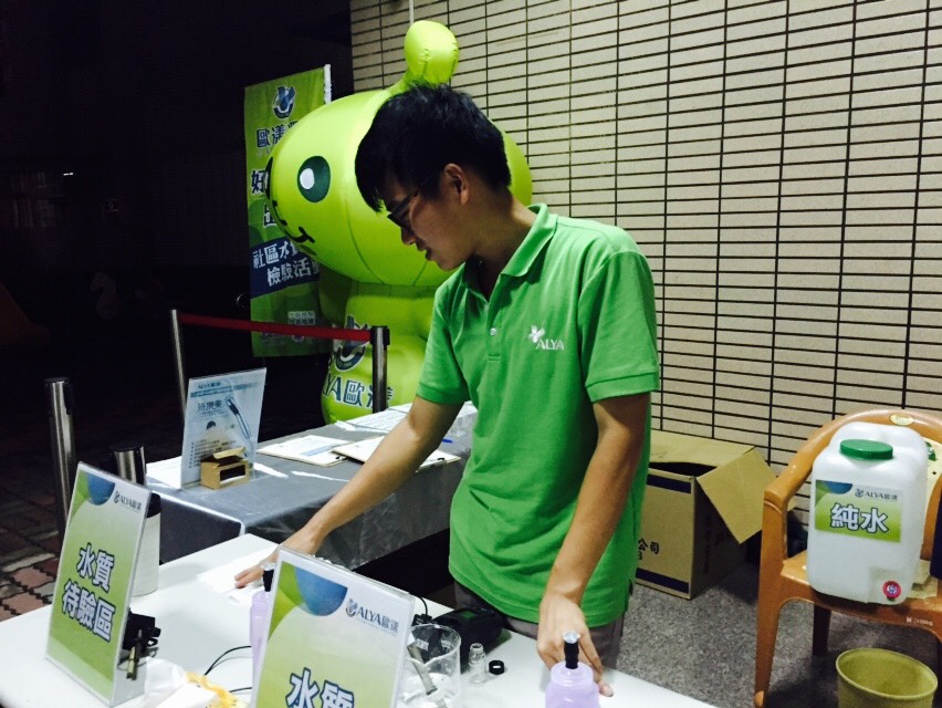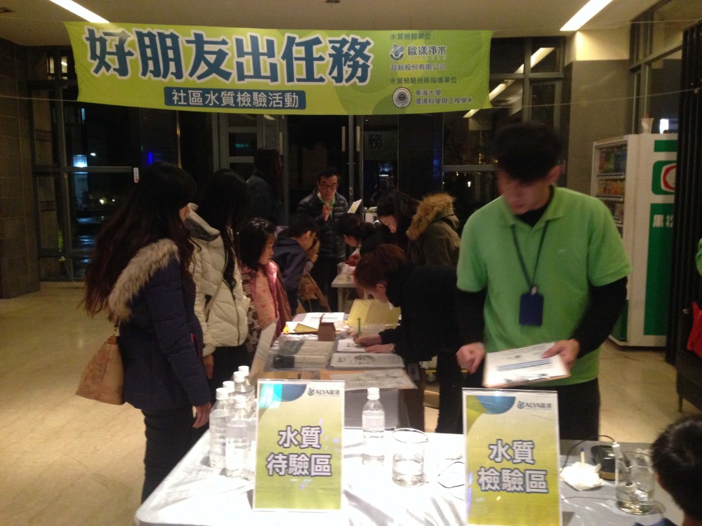 2. 免費社區水質檢驗 為了關心台灣同胞的用水安全,歐漾淨水也與東海大學環境工程學系簽訂合作契約,在北、中、南前後共完成20場的免費社區水質檢驗,為各社區的住戶一一檢視分析住戶的用水安全。 |