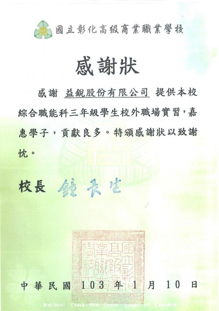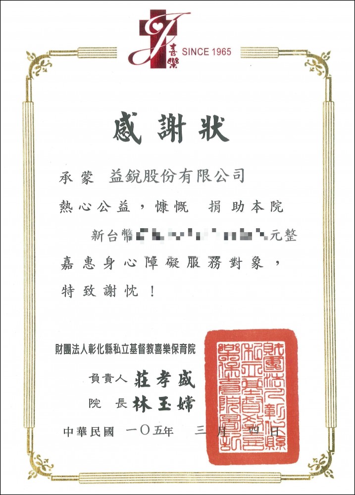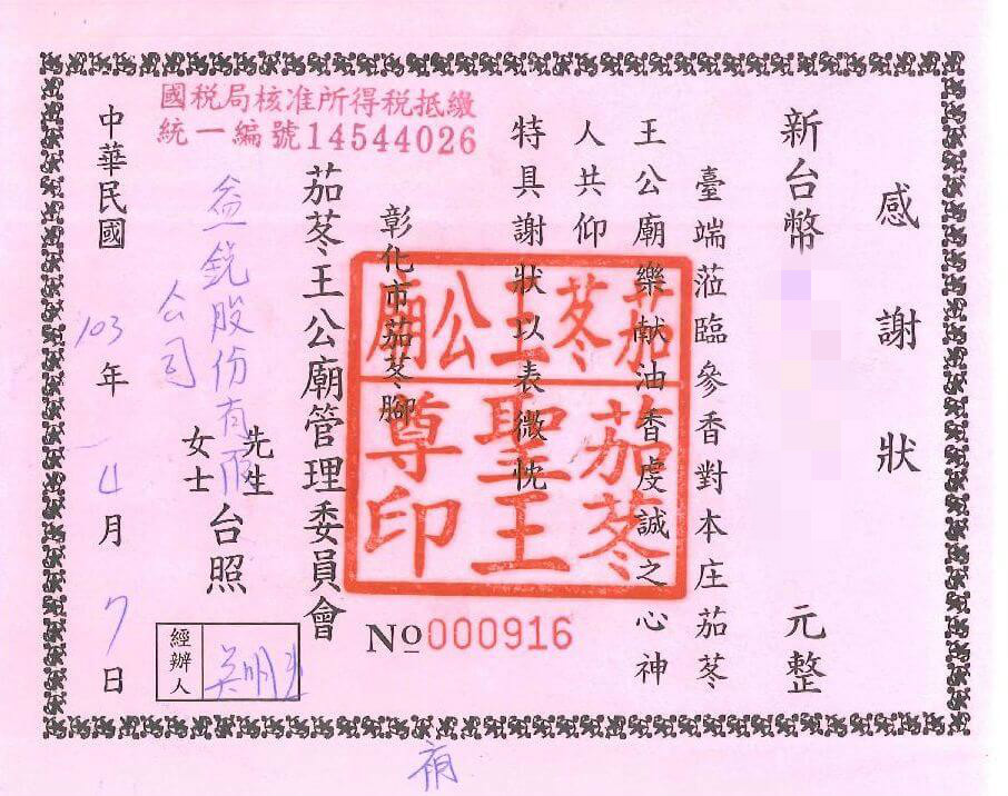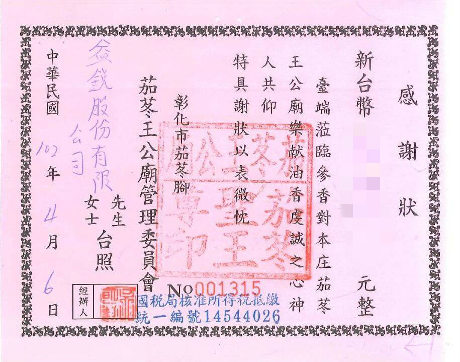 | *103年捐助廟宇油香錢* | *105年捐助彰化師範大學獎學金* | ||||||||||||||||||||||