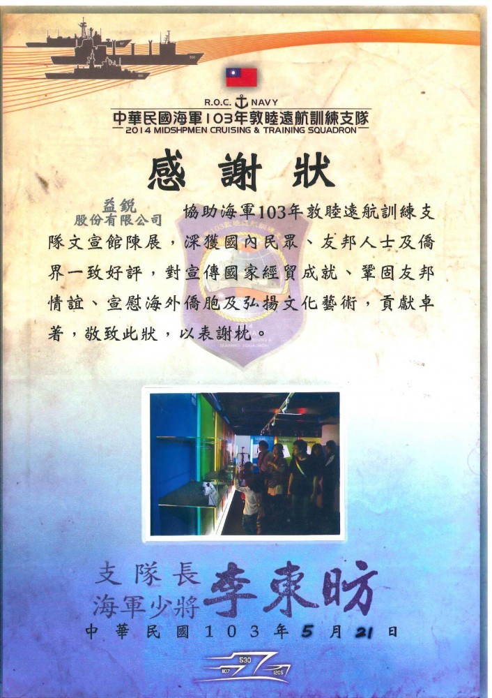 | *103年協助海軍文宣館呈列產品* | *104年協助海軍文宣館呈列產品* | ||||||||||||||||||||||