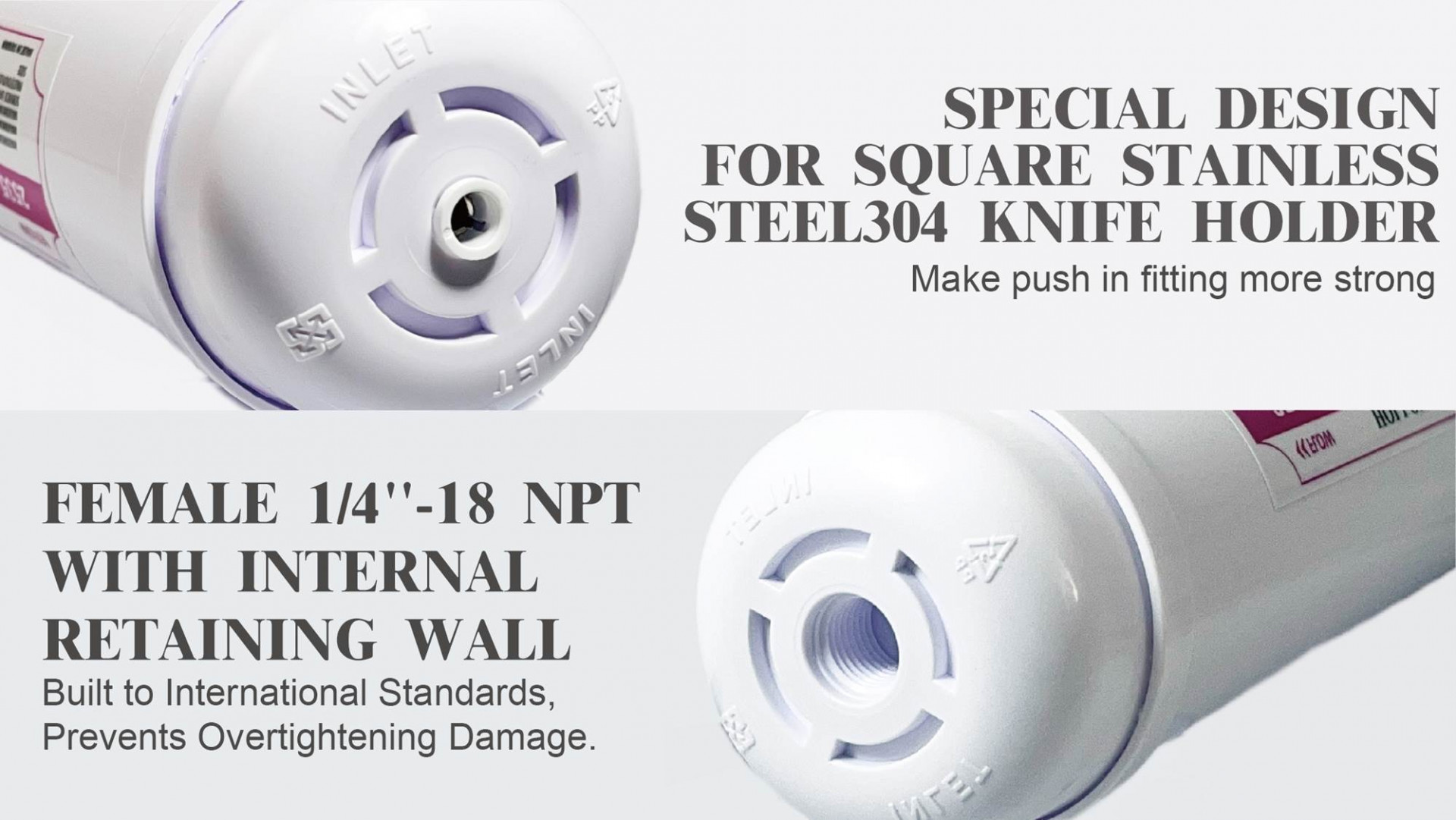 - Female 1/4"-18 thread are manufactured and inspected in accordance with international standard regulations, and have a special design of internal teeth retaining wall to avoid the risk of damage caused by over tightening by the installer