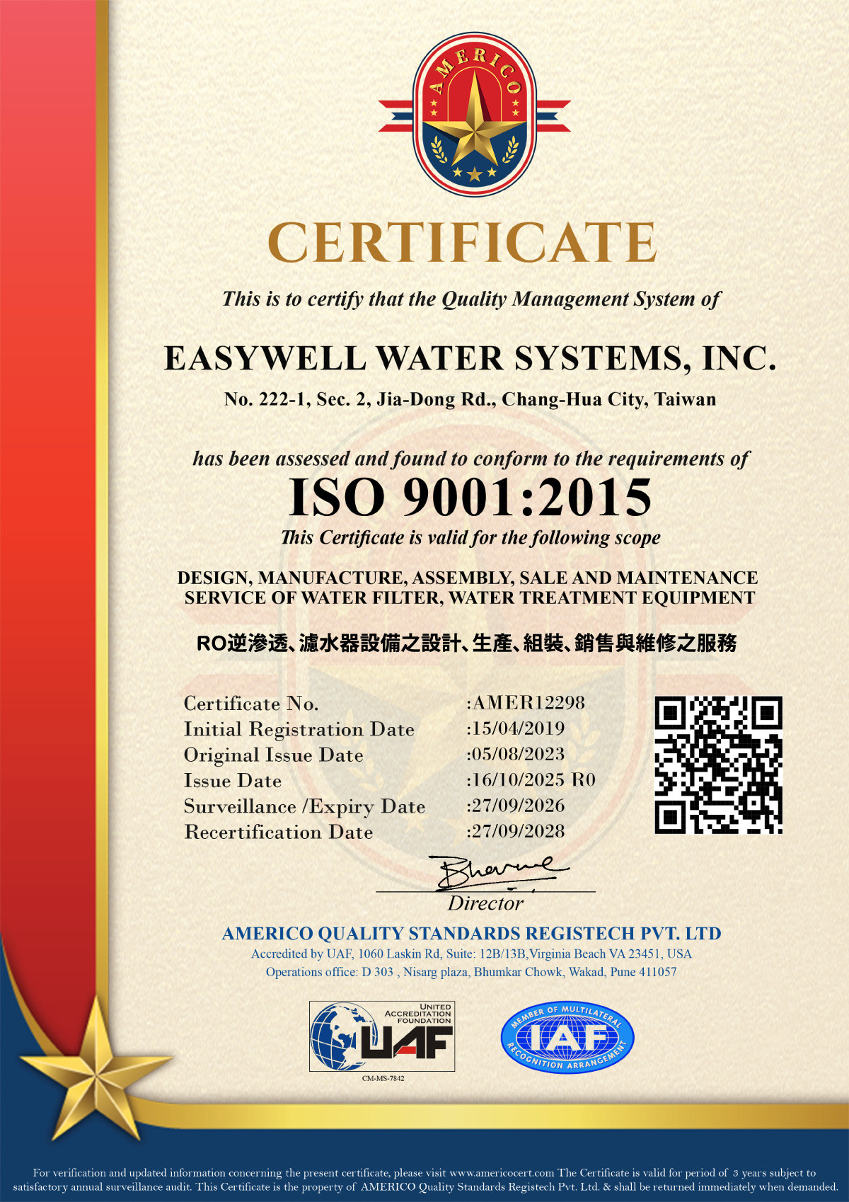 Easywell obtained ISO-9001 international quality certification in 1999 and has completed thorough control of product quality, and has continuously implemented the following quality control and quality assurance practices on a daily basis: