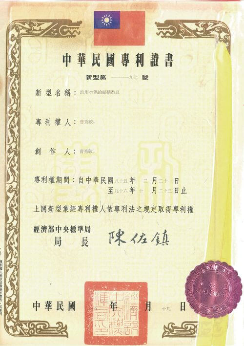 Alya Patent Chronology (Taiwan)