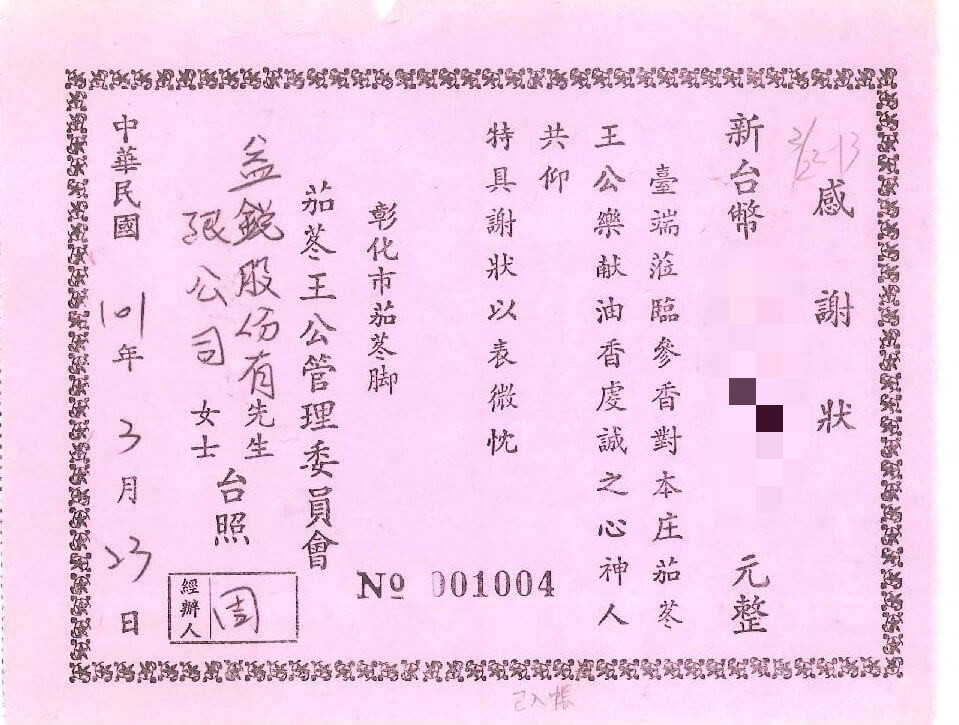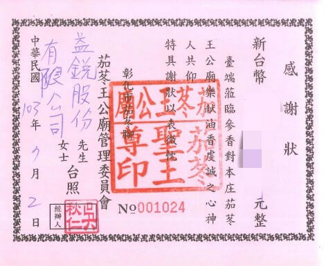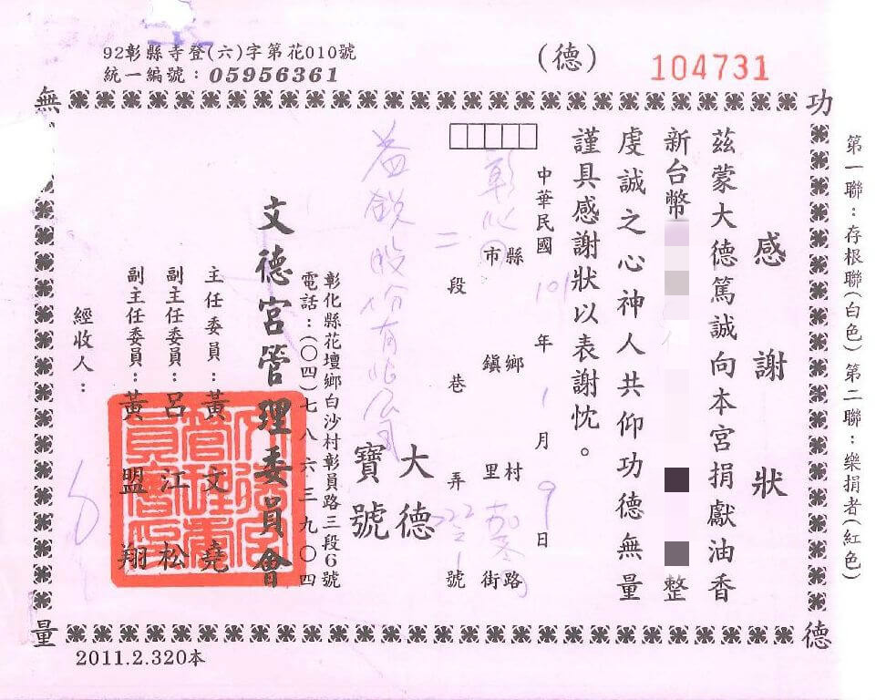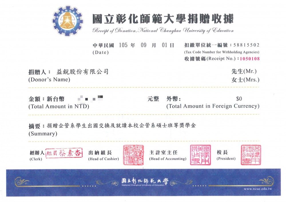 | *103年捐助廟宇油香錢* | *105年捐助彰化師範大學獎學金* | ||||||||||||||||||||||