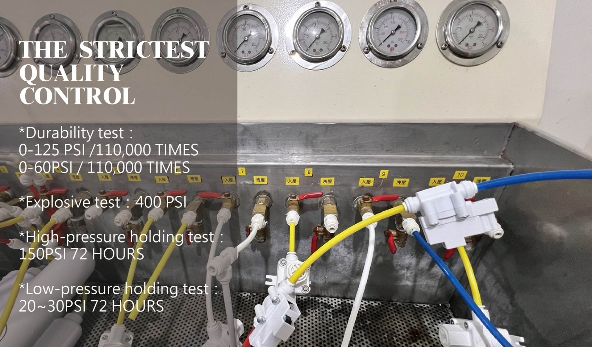 - Pass 100,000 times cycle test under 150 PSI water pressure
