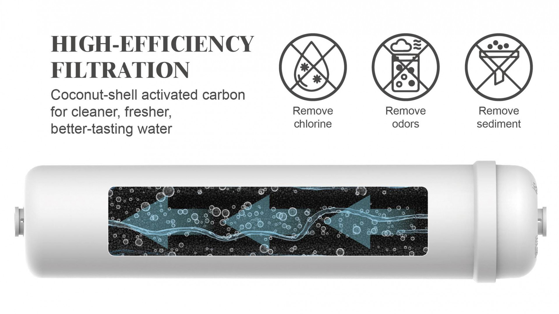 - Using coconut granular activated carbon, effectively remove chlorine, chloroform, volatile organic compounds, harmful chemicals, pesticides, eliminate peculiar smell, bad smell, and make the water taste well