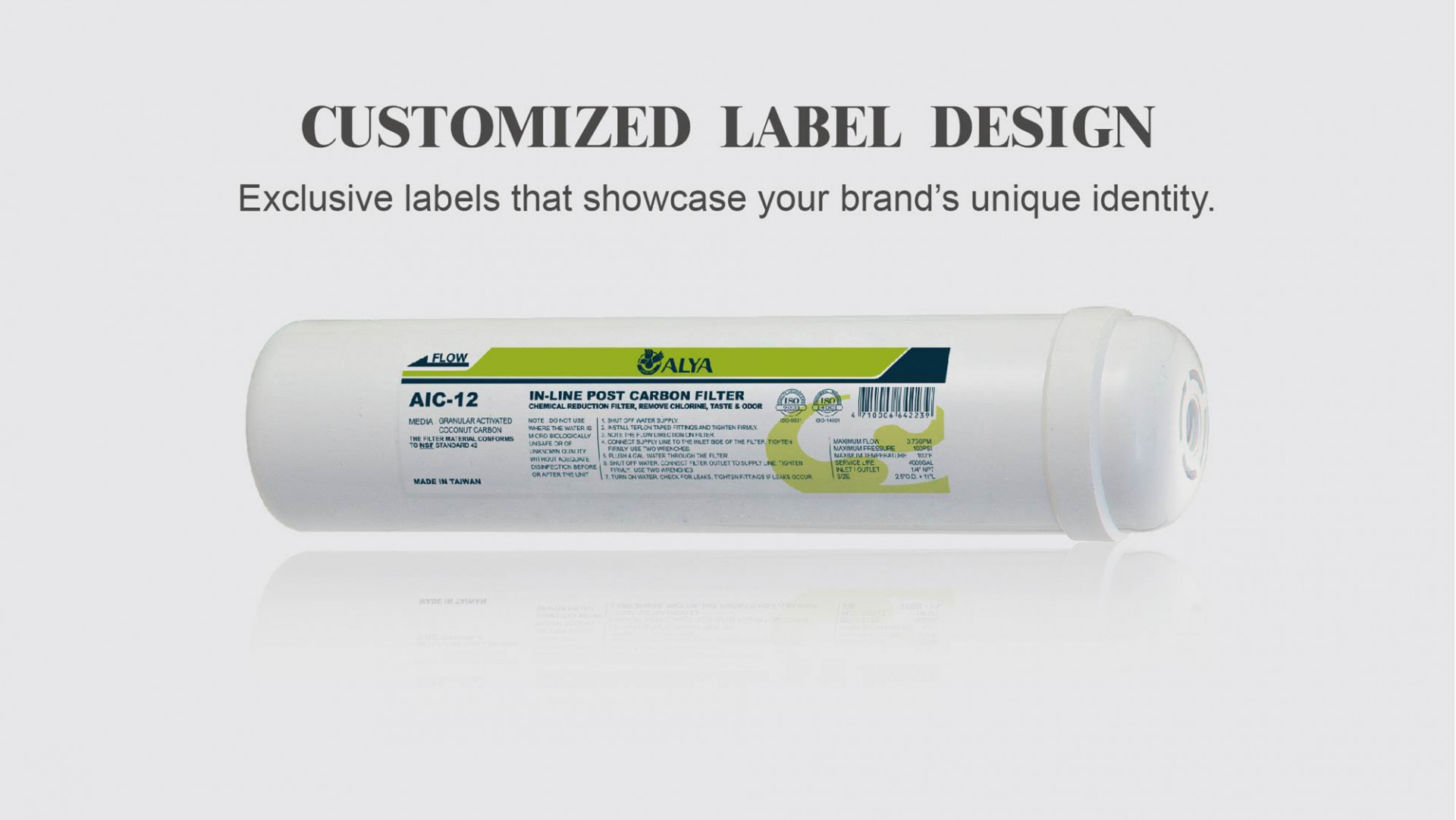 AIC-12 | 11" Inch In-line post cartridge, Coconut Shell Granular Activated Carbon Pre-Filter, GAC Filtration with Female 1/4"-18 thread, Customized Me