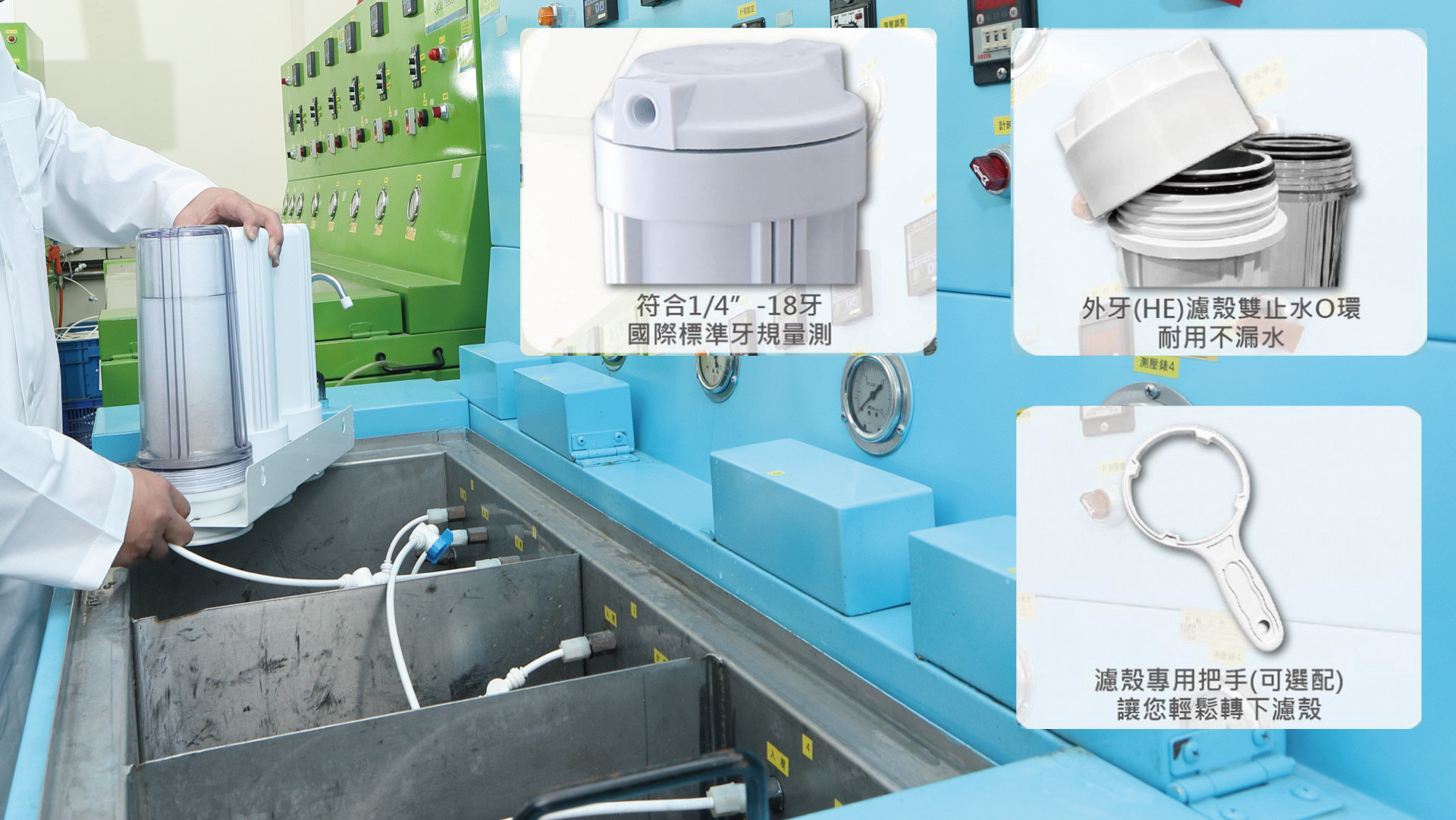 4. PP白色濾殼在 150 PSI 水壓下,通過 10 萬次可靠性嚴格試驗